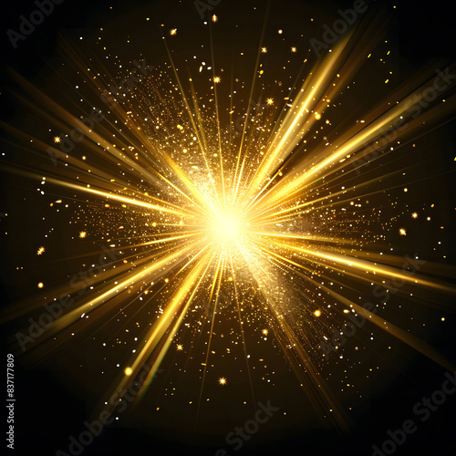 © Mahmud, Naklejka premium Abstract golden bright light. Gold shine burst vector illustration isolated design.