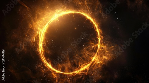 © Niphaphan, Obraz premium Abstract golden circle effect with a radiant glow and a sophisticated, luxurious atmosphere