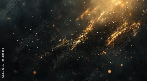 Fototapeta premium Abstract golden dust particles floating in dark space.