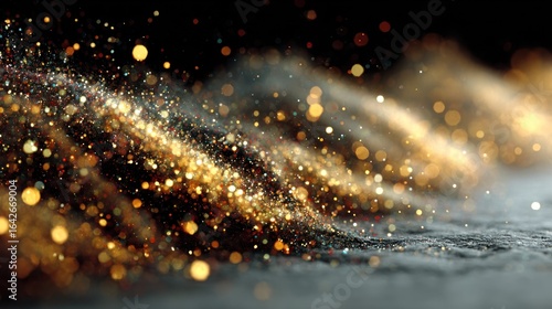 © Nia, Naklejka premium Abstract Golden Glitter Texture Background, Sparkling Dust and Shimmering Lights