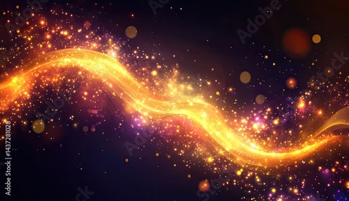 © Hasniah, Obraz premium Abstract golden glowing wave