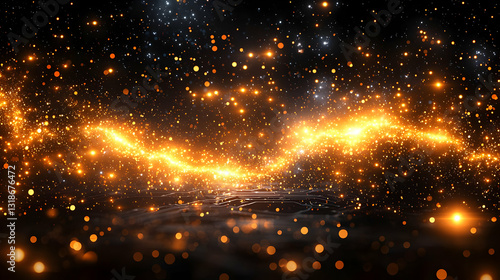 © Santri, Naklejka premium Abstract Golden Light Trails and Sparkles on Dark Background