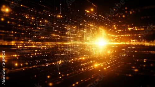 © Artajar, Fototapeta premium Abstract Golden Light Trails Sparkling Energy Burst Background
