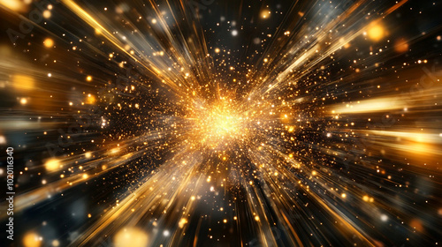 © PixelVault, Fototapeta premium Abstract golden lights and particles futuristic background. Festive abstract fireworks space stars.