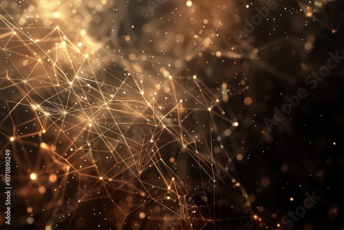 © Chotijah, Fototapeta premium Abstract Golden Network of Interconnected Lines and Points