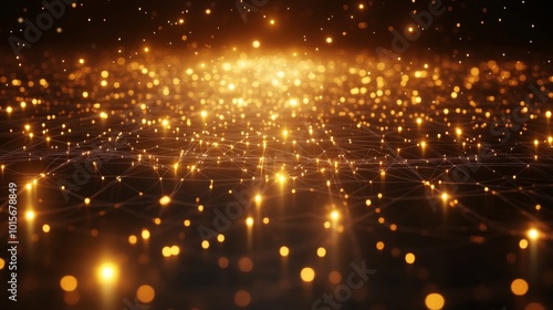 Fototapeta premium Abstract Golden Network with Glowing Points and Bokeh Lights