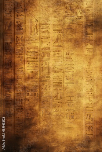 Fototapeta premium Abstract golden papyrus texture with subtle hieroglyphic patterns, ancient...