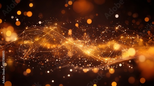© Mhagi27, Naklejka premium Abstract golden particles and bokeh lights background.