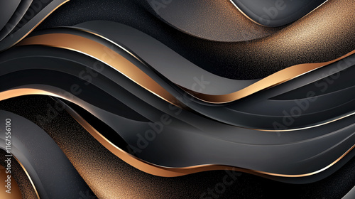 Obraz premium Abstract golden particles flowing and forming a luminous wavy surface with luxury abstract curved geometric lines, Abstract wavy black surface with lines, abstract background with floating lines.