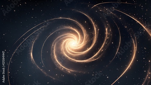 Obraz premium Abstract golden spiral galaxy background with sparkling stars.