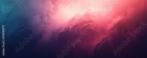 © Coosh448, Naklejka premium Abstract gradient background with soft neon glow, grainy texture, dark to pink transition, moody atmosphere