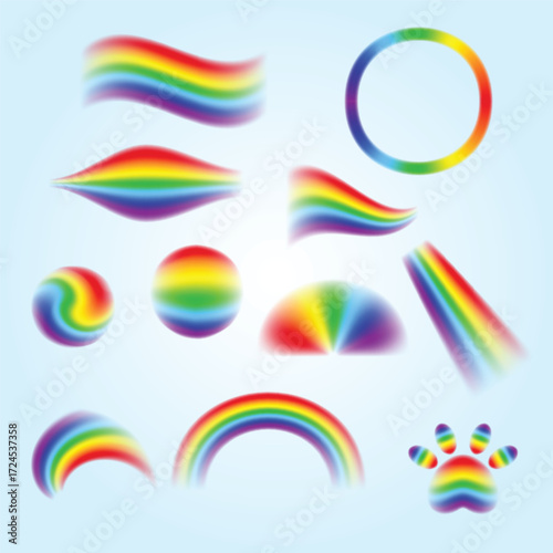 Fototapeta premium Abstract Gradient Colorful Rainbow Shape Element Set on Light Blue Background