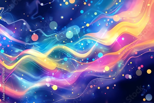 Fototapeta premium Abstract gradient wave design overlaid with glowing geometric patterns