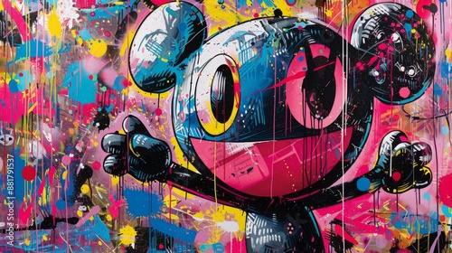 Fototapeta premium Abstract Graffiti Art with a Cartoon Character