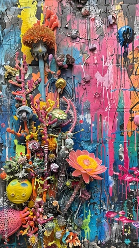 Naklejka premium Abstract Graffiti Art with Flowers and Figures.