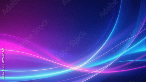 Naklejka premium Abstract grainy background with gentle colored glowing waves and lines, blue and purple colors, noise grain texture wallpaper design