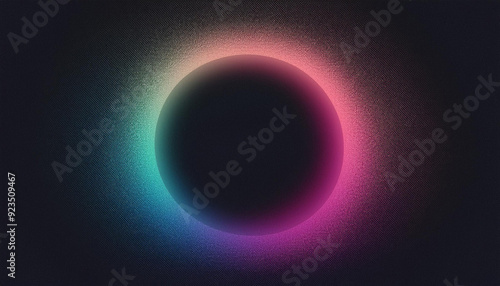 Obraz premium abstract grainy purple pink green gradient glowing ring, black background...