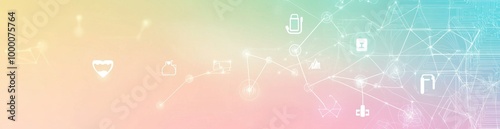 Fototapeta premium Abstract graphic with icons representing health, technology, and connectivity.