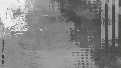Fototapeta premium Abstract gray and white digital painting with textured brushstrokes and geometric patterns.