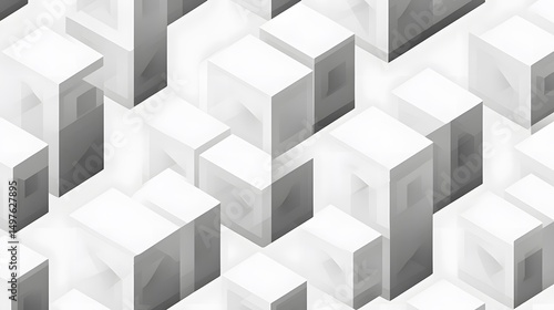 © Solaiman, Obraz premium Abstract Gray and White Isometric Cube Pattern Background