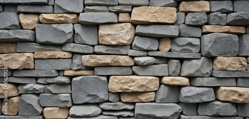 © Art and Illustration, Obraz premium Abstract Gray Layered Stone Wall