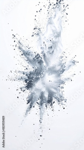 Fototapeta premium Abstract Gray Powder Explosion Against White Background Dynamic Motion
