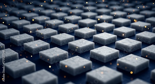 Obraz premium Abstract Gray Squares Pattern with Sparkling Golden Particles