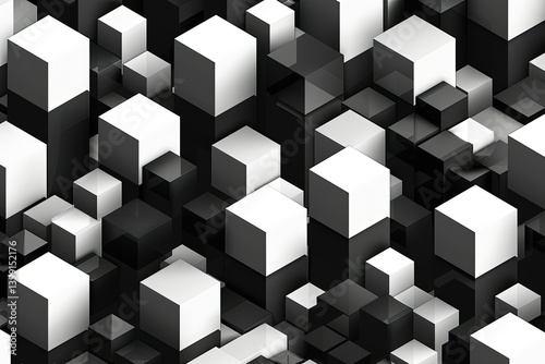 Obraz premium Abstract grayscale 3D rendering of cubes, forming a complex, dense, and...