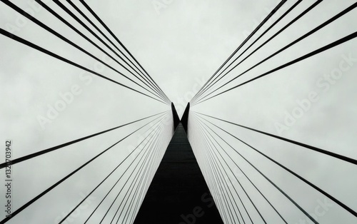 Fototapeta premium Abstract grayscale image depicting a bridge's structure from a low angle,...