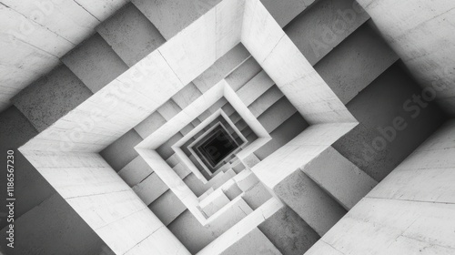 Obraz premium Abstract grayscale image of a spiraling, receding concrete structure creating...