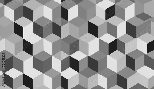 © Kuyari, Obraz premium Abstract grayscale pattern of overlapping cubes