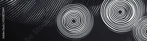 Obraz premium Abstract grayscale spiral and dotted pattern design.