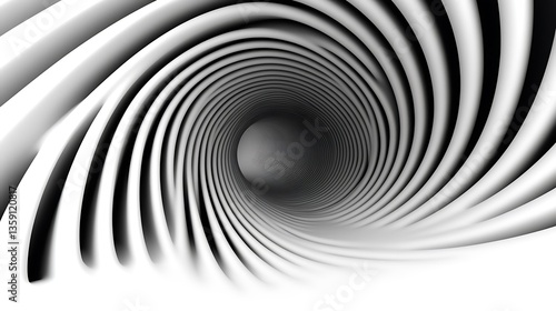 Obraz premium Abstract grayscale spiral tunnel with sphere.