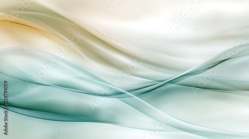 © lisa, Fototapeta premium Abstract Green and Beige Wave Design