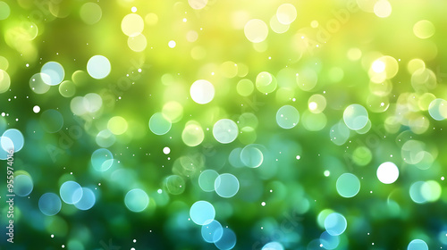 © sarinya, Fototapeta premium Abstract Green and Blue Bokeh Background with Sparkling Lights