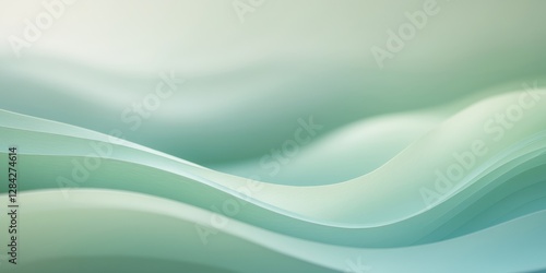 © Ta Sher, Fototapeta premium Abstract Green and Blue Wavy Lines Background with Light Pastel Tones