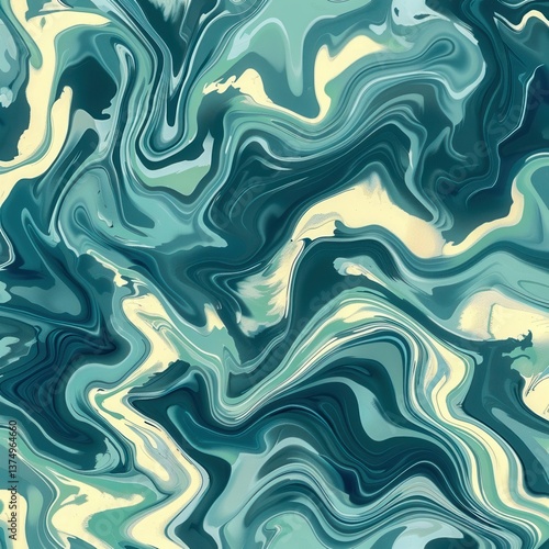 Fototapeta premium Abstract Green and Cream Fluid Art with Swirls and Textures