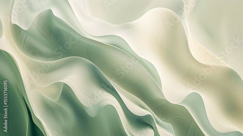 © pixelstoock, Obraz premium Abstract Green and Cream Wavy Background