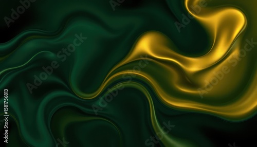 © Yono, Obraz premium Abstract Green and Gold Fluid Art Wallpaper or Background