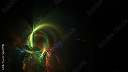 Obraz premium Abstract green and gold shiny shapes. Fantastic light effect. Digital fractal...