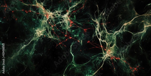© ShinneProject, Fototapeta premium Abstract green and red network pattern on black background.