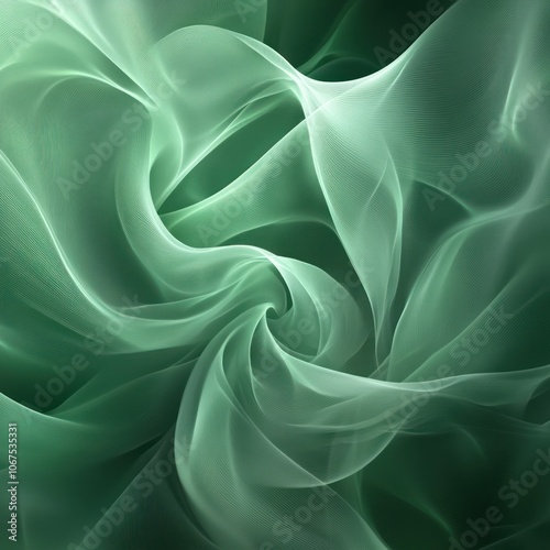 © naila mutmainah, Fototapeta premium Abstract green and white swirl on a black background.