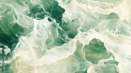 © Penatic Studio, Obraz premium Abstract Green and White Swirling Water Pattern