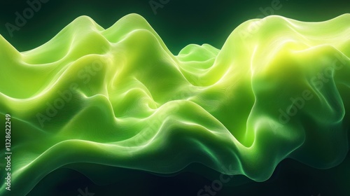 © Wawastock, Obraz premium Abstract green and yellow flowing waves, smooth surface, dynamic movement, illuminated, dark background.