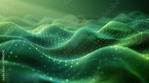 © Ghiska, Obraz premium Abstract green background with dots and waves. Green gradient with halftone pattern.