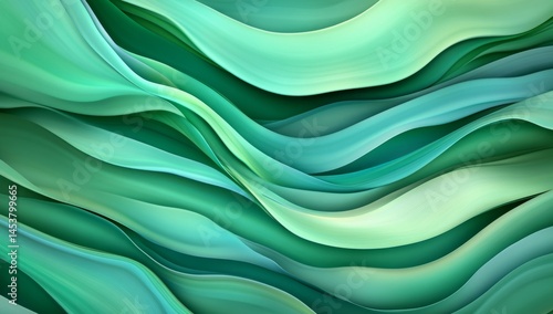 © Emqan, Obraz premium Abstract Green Background with Flowing Lines and Curves, Elegant Modern Design