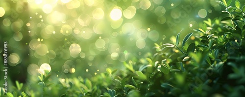 Fototapeta premium Abstract Green Bokeh Background with Defocused Lights and Nature Elements