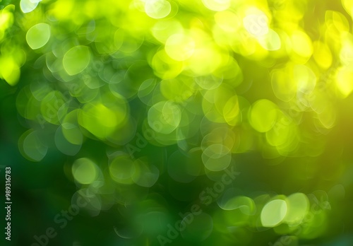 © Eva, Fototapeta premium Abstract Green Bokeh Background with Sunlit Light
