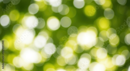 © logitech, Fototapeta premium Abstract Green Bokeh: Sunlit Leaves, Soft Focus, Bright Circles