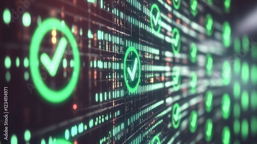 Obraz premium Abstract Green Checkmarks Digital Data Stream Success Concept